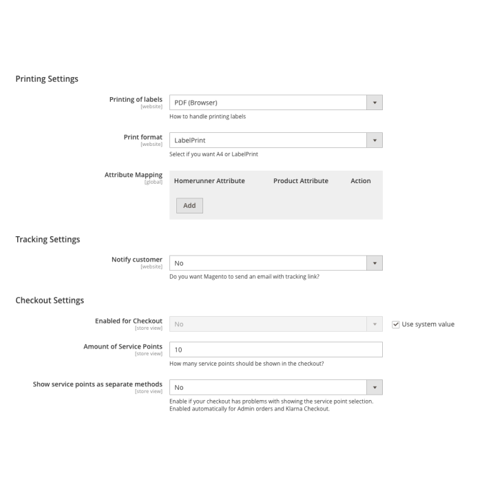 Modulet giver fleksible indstillinger til hvordan forsendelser håndteres. Du kan f.eks. vælge automatisk at oprette shipments, automatisk fuldføre ordrer når label oprettes, eller automatisk sende trackingmail til kunden.